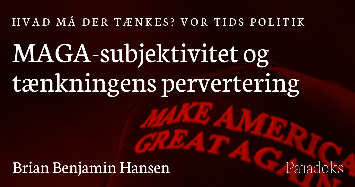 Selvom denne tekst umiddelbart handler meget om Trump, er det vigtigt at pointere, at den forsøger at adressere noget langt bredere, nemlig selve konjunkturerne for samtidens tænkning. Fenn og Trump er ikke interessante i al deres kontingens, men som figurer, der aftegner et bestemt forhold til tænkning og en bestemt form for subjektivitet, som synes at have en vis udbredelse. Denne subjektivitet skrives i teksten også frem som en MAGA-subjektivitet, hvor det væsentlige igen er, at den annullerer det ubevidste eller bærer det ubevidste udenpå. Det er dog ikke MAGA-subjektiviteten, der er årsag til aflysningen af det ubevidste. Snarere er den selv en mulig reaktion (ud af potentielt andre) på de kriser og mareridt, vi i dag står over for.