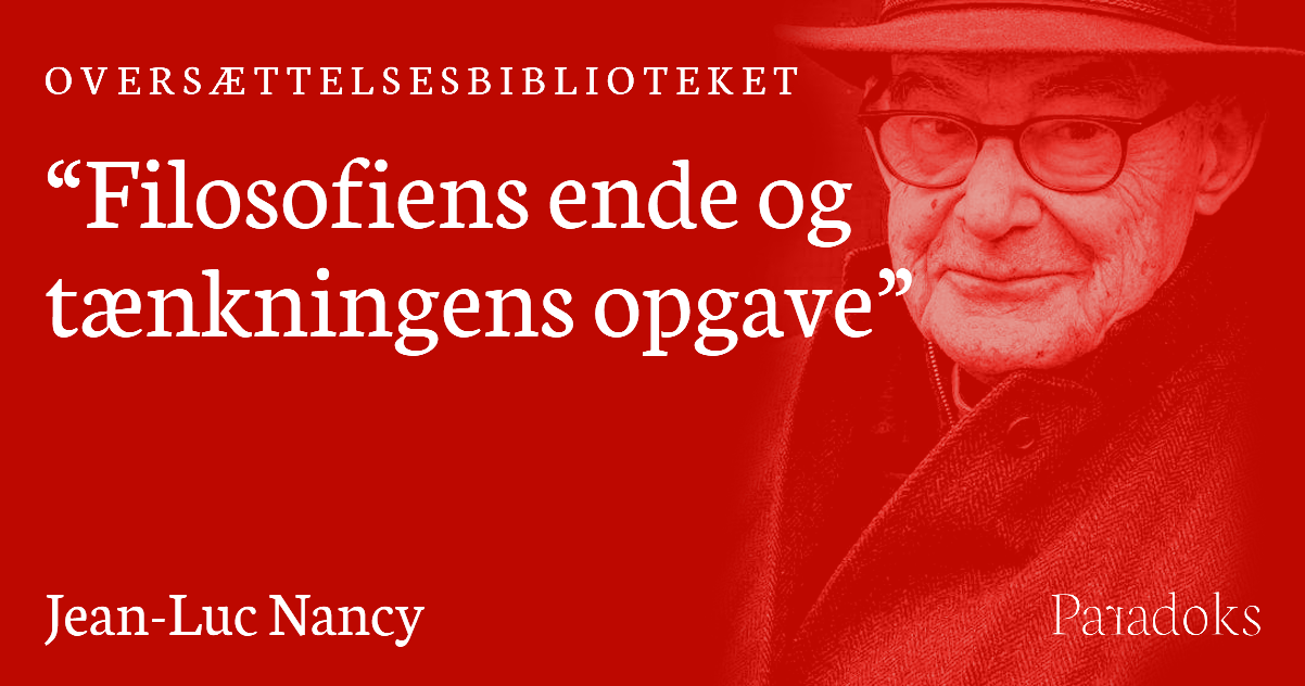 Oversat af Kristian Olesen Toft efter Jean-Luc Nancy, “La fin de la philosophie et la tâche de la pensée”, først udgivet digitalt d. 14. juli 2021 af Philosophy World Democracy, sidenhen i bogform i 2024 af William Blake & Co. Édit. Tak til Hélène Nancy for rettighederne til oversættelsen.